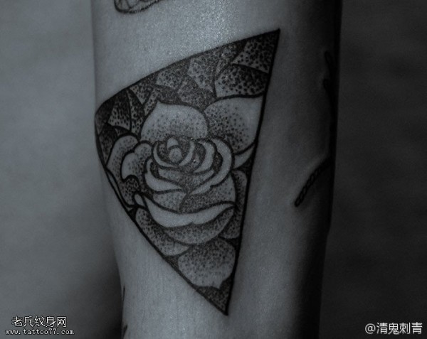 三角形内嵌花朵纹身图案