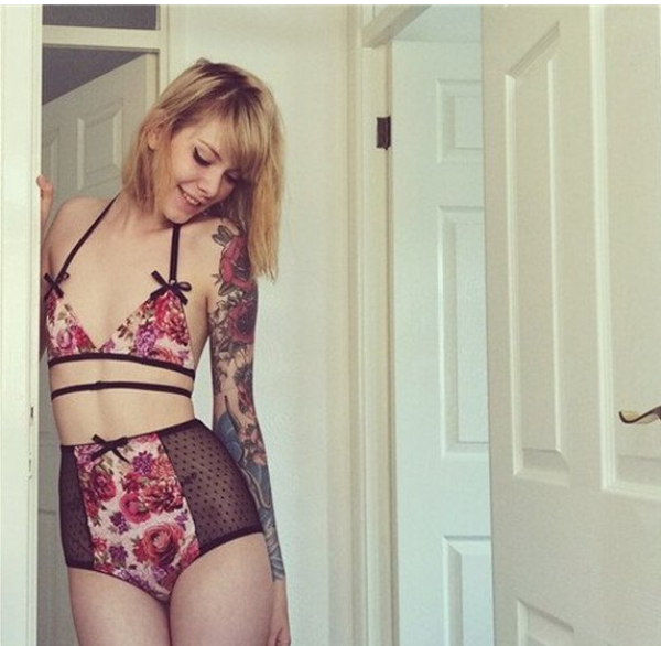 时尚靓丽比基尼美女个性手臂纹身图片图片