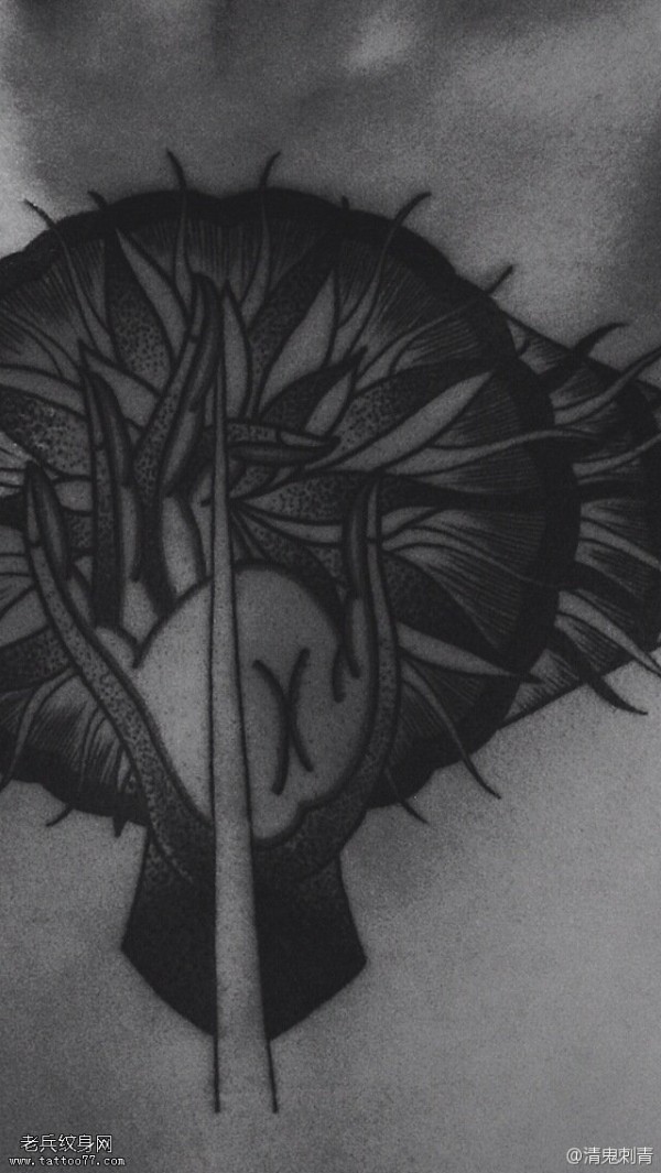 草图感向日葵纹身图案_植物纹身图案大全_纹身图吧