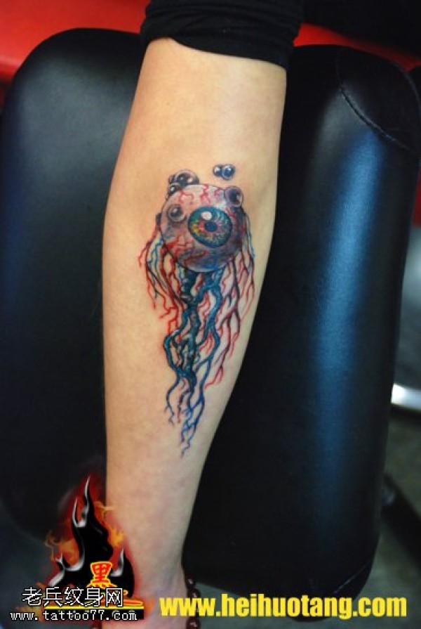 手臂超现代感水泡眼球纹身图案