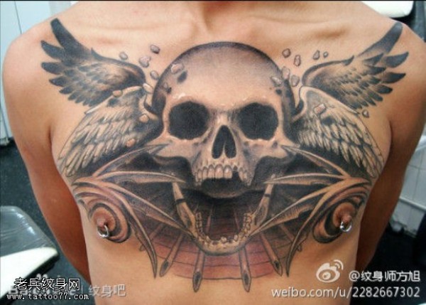 胸口一款恐怖的骷髅纹身图案