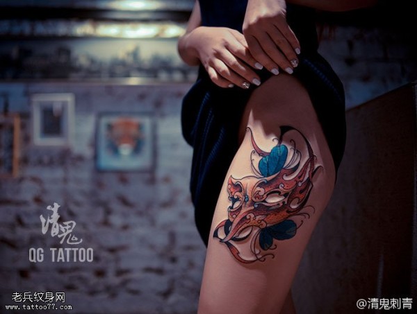 传统花腿纹身--18张传统风格的大花腿纹身图案作品