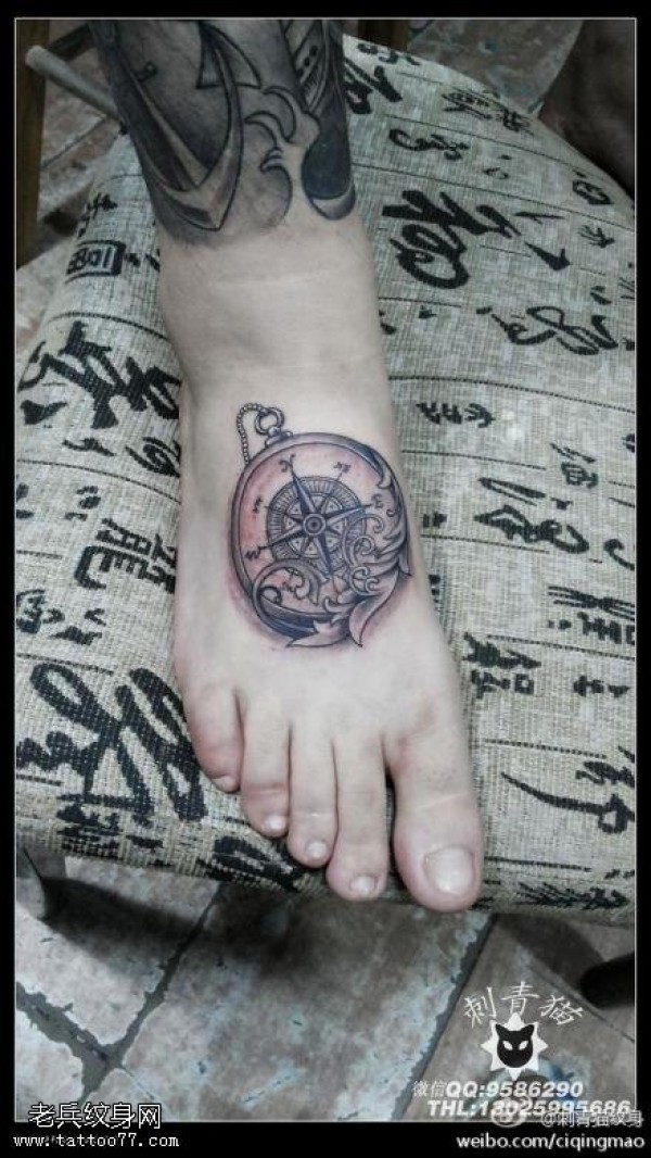 脚背指南针纹身图案