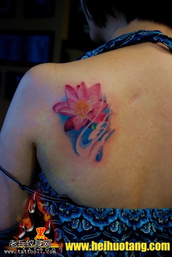 女生肩花纹身_15张女性双肩对称的肩花纹身图案作品图片