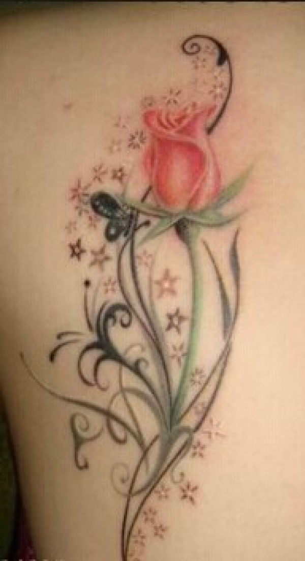 女生后背唯美时尚的三维玫瑰花纹身图片