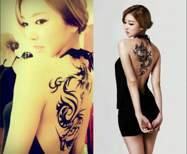 漂亮女生后背唯美清新的龙腾图纹身图片