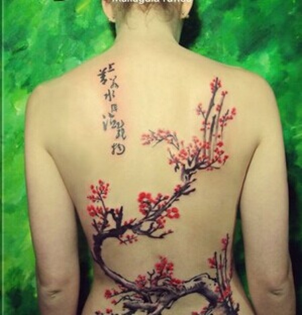 后肩唯美花藤英文图案图片_植物纹身图案大全_纹身图吧