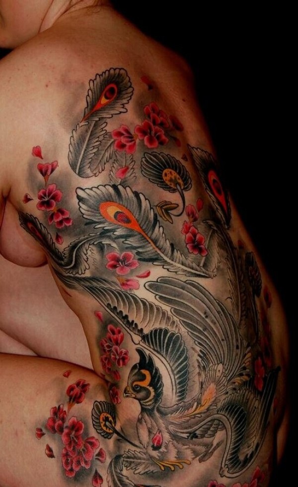 凤凰纹身 后背凤凰纹身人不多,但是很好看