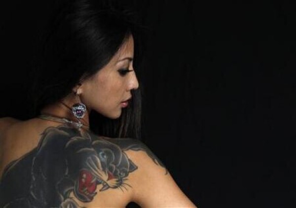 漂亮美女后背好看霸气的黑豹纹身图片