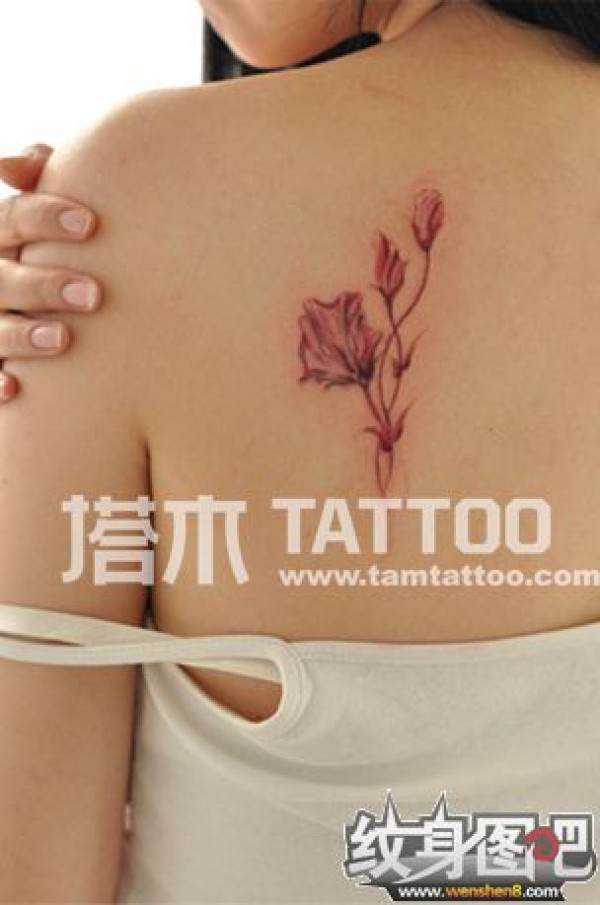 后肩唯美花藤英文图案图片_植物纹身图案大全_纹身图吧