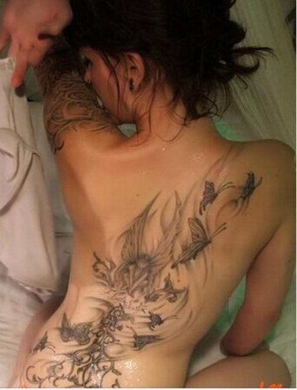 性感女生满背创意文身作品