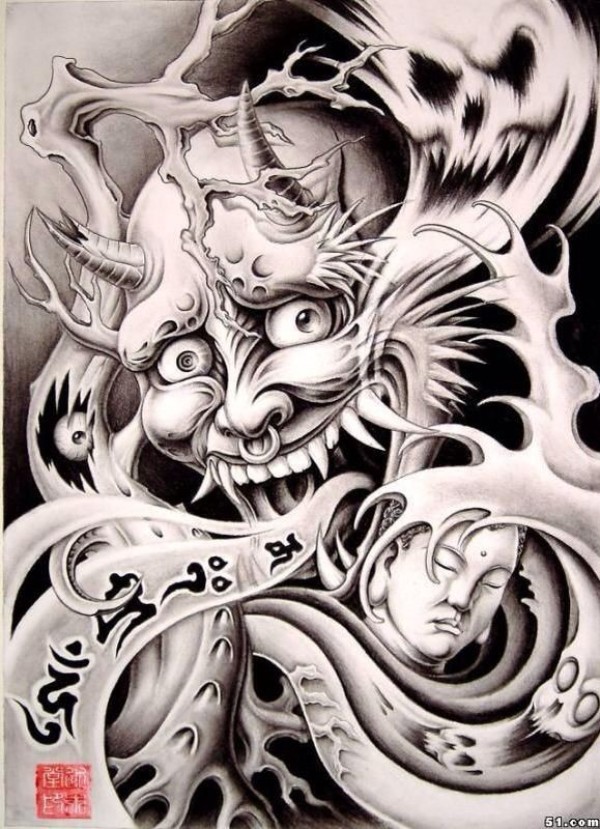 帅气好看的般若纹身手稿