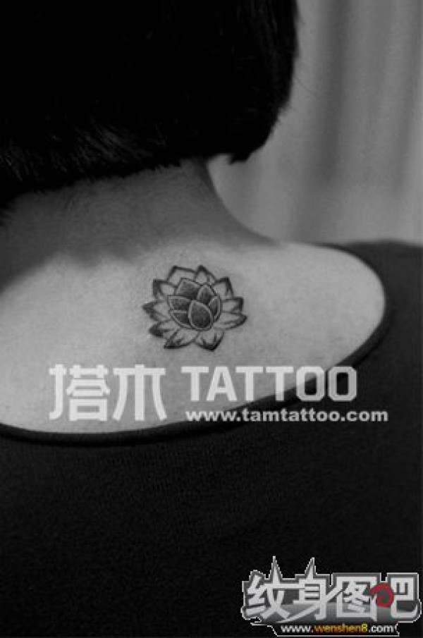 脖子后的荷花图腾纹身图案