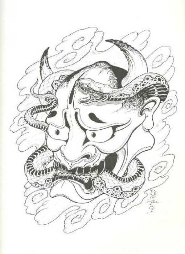 能面万媚纹身手稿_52张日式能剧面具纹身手稿图案素材欣赏