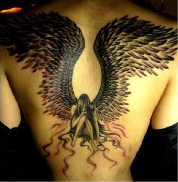男生背部经典美女精灵纹身图案