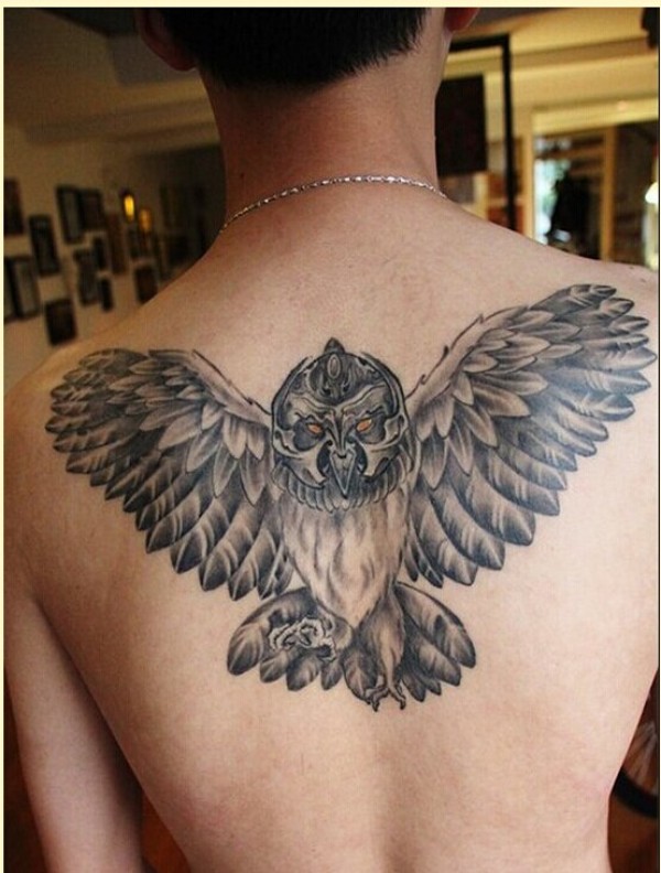 背部个性猫头鹰武士纹身
