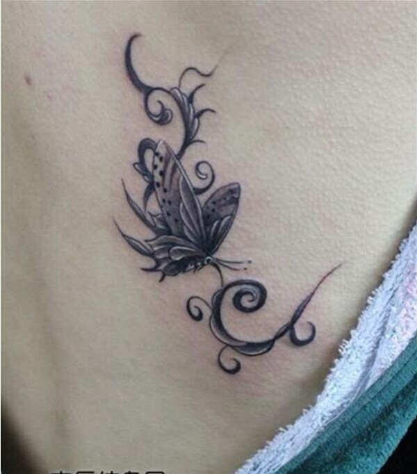 美女背部漂亮蝴蝶藤蔓纹身图案 图片