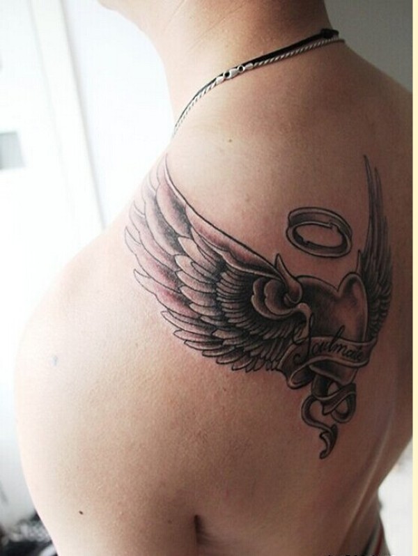 背部爱心翅膀纹身图案分享图片