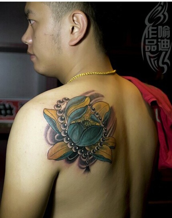 帅哥后背潮流时尚莲花佛珠纹身图片图片