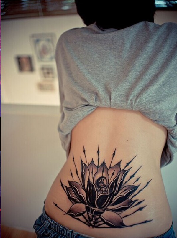 女性腰部莲花花纹刺青_腰部纹身图案大全_纹身图吧