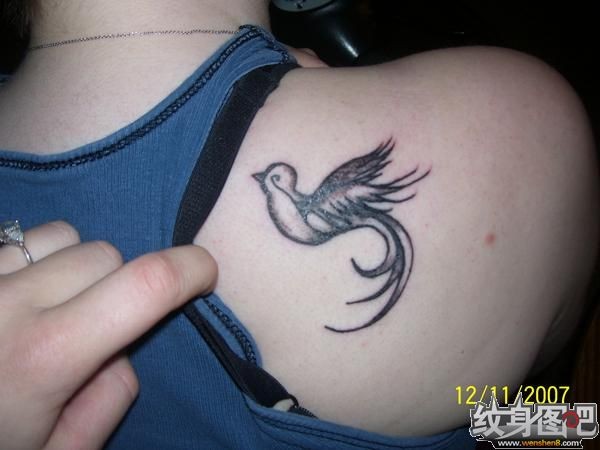 肩部黑色的鸽子纹身