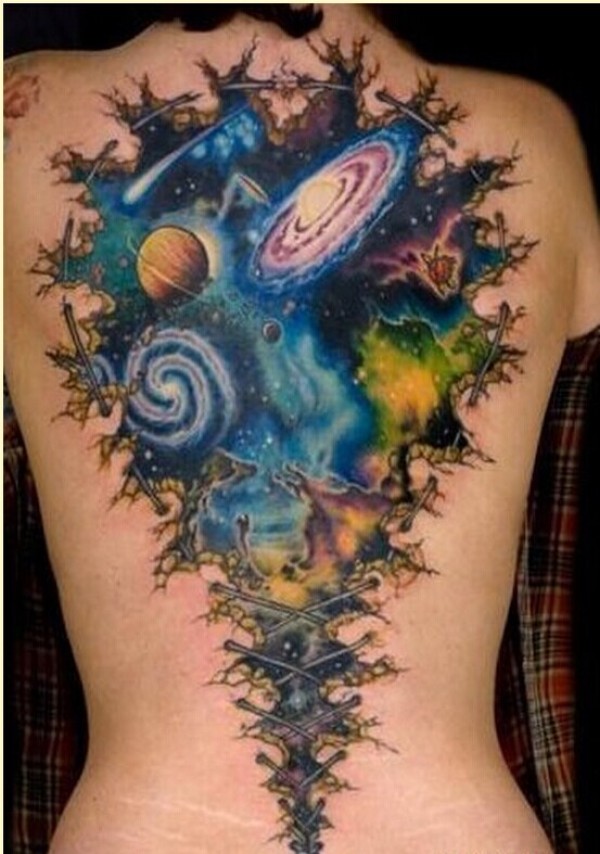 性感女生背部漂亮星空纹身