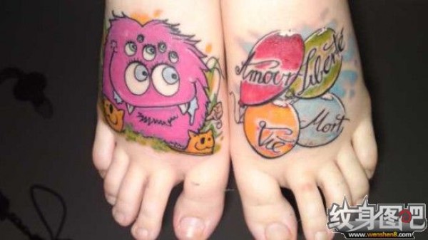 脚背上的小怪兽和气球纹身图案