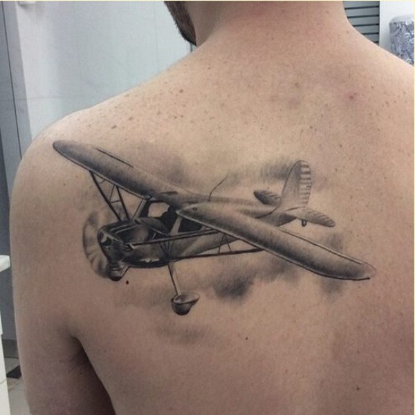 时尚男士背部个性好看的飞机纹身图片图片