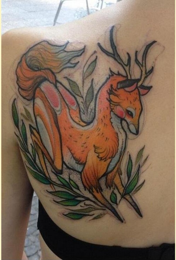 时尚经典背部个性彩色羚羊纹身