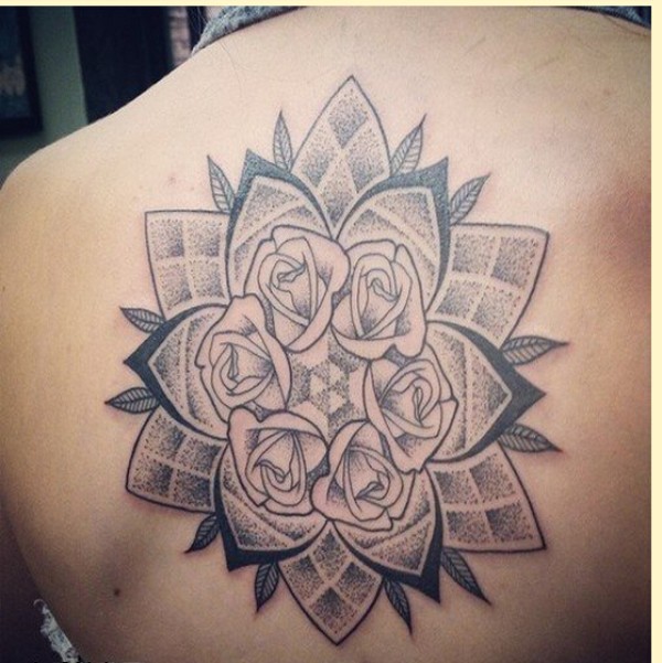 个性时尚背部漂亮点状玫瑰花纹身