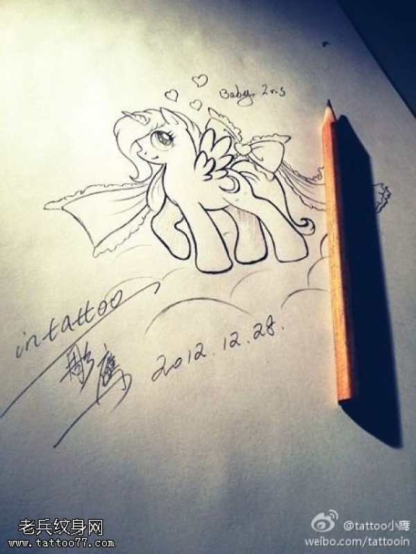 独角兽蝴蝶结纹身手稿图案