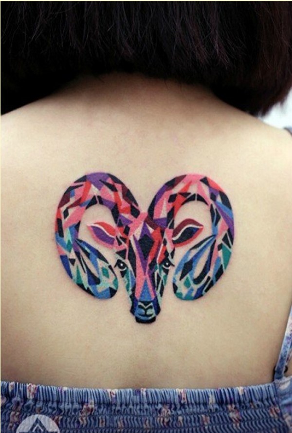 时尚女生背部个性好看的彩色羚羊纹身图片