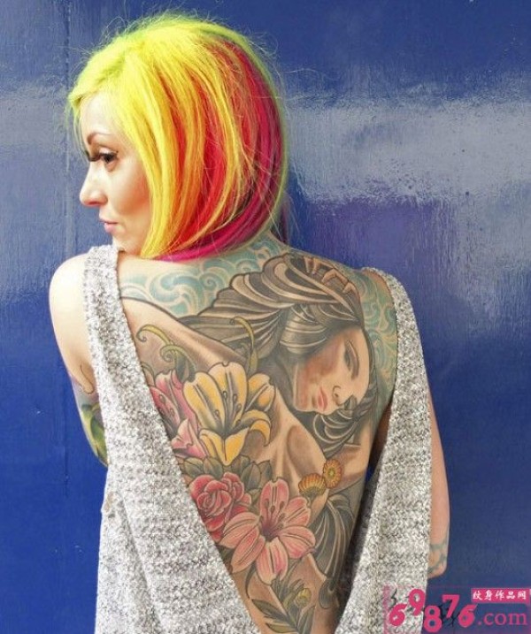 性感女生满背创意文身作品