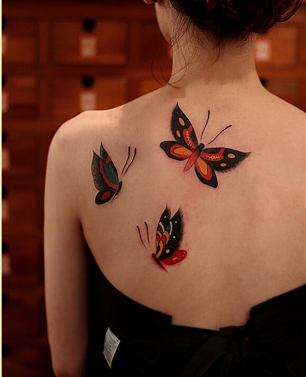时尚女生背部唯美好看的蝴蝶纹身图案