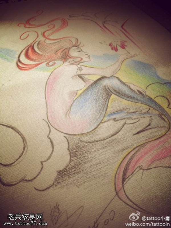 彩色美人鱼纹身手稿图