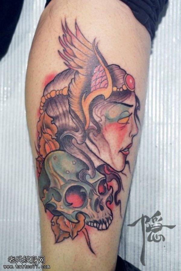 小腿艺妓纹身图案