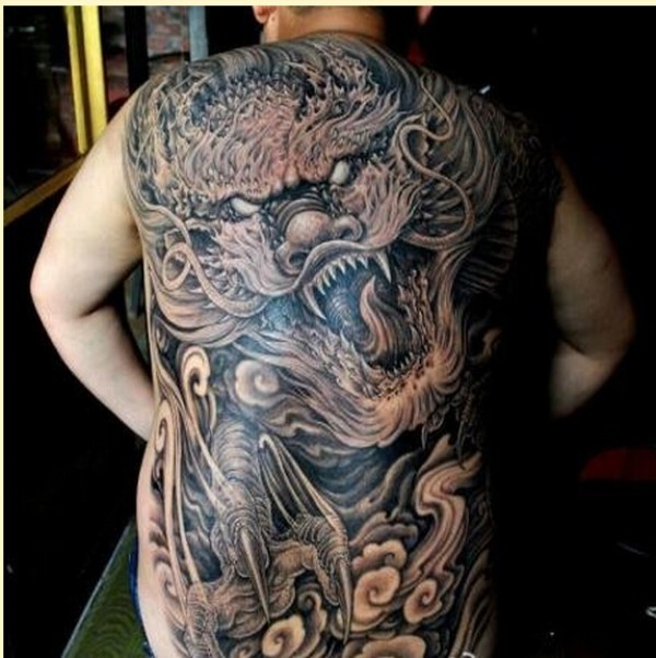 个性时尚男士满背霸气龙纹身