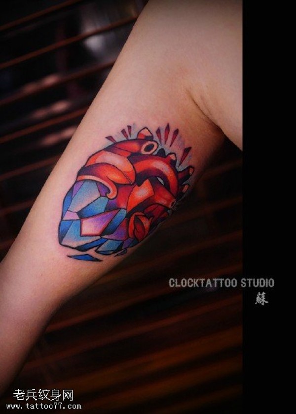 手臂内侧彩色心脏纹身图片