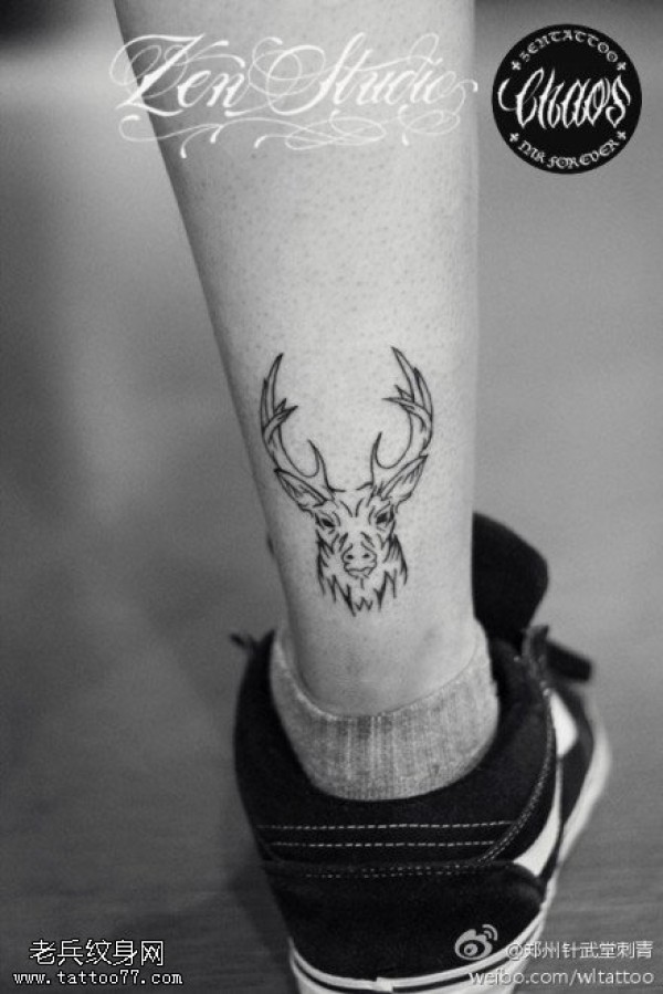 腿部羚羊纹身手稿图案