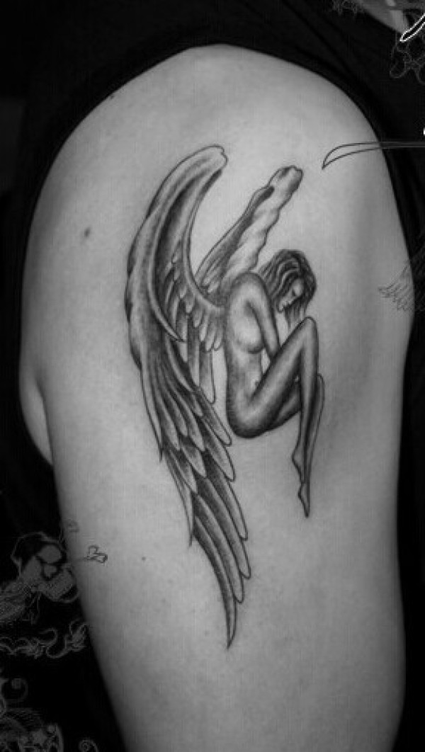 大臂上个性的天使纹身