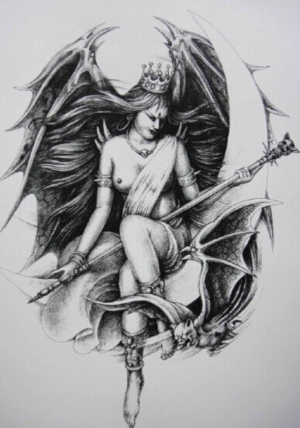 时尚潮流的天使纹身手稿