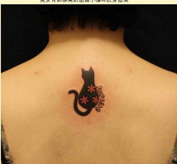 美女背部经典时尚的图腾小猫咪纹身图图片