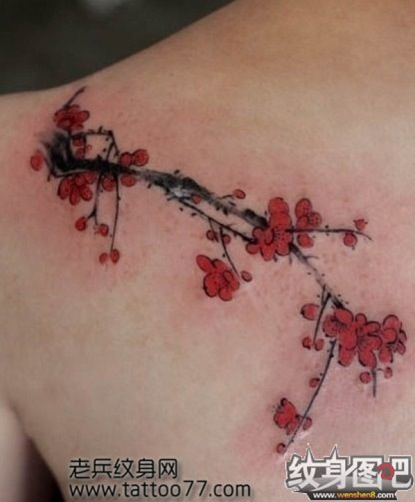 后肩唯美花藤英文图案图片_植物纹身图案大全_纹身图吧