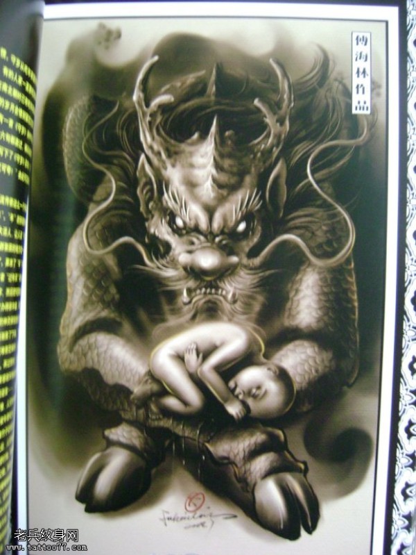 龙纹身手稿_一组老传统黑灰龙手稿纹身图案