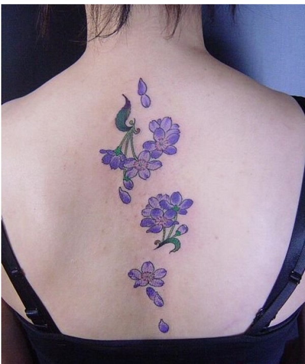 美女后背漂亮好看紫色樱花纹身图片图片