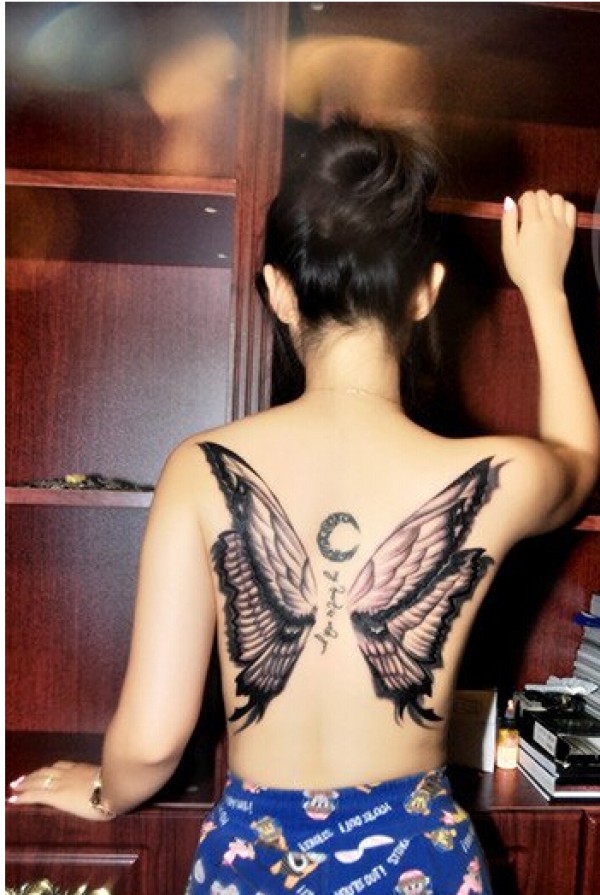 美女背部唯美好看的蝴蝶翅膀纹身图案