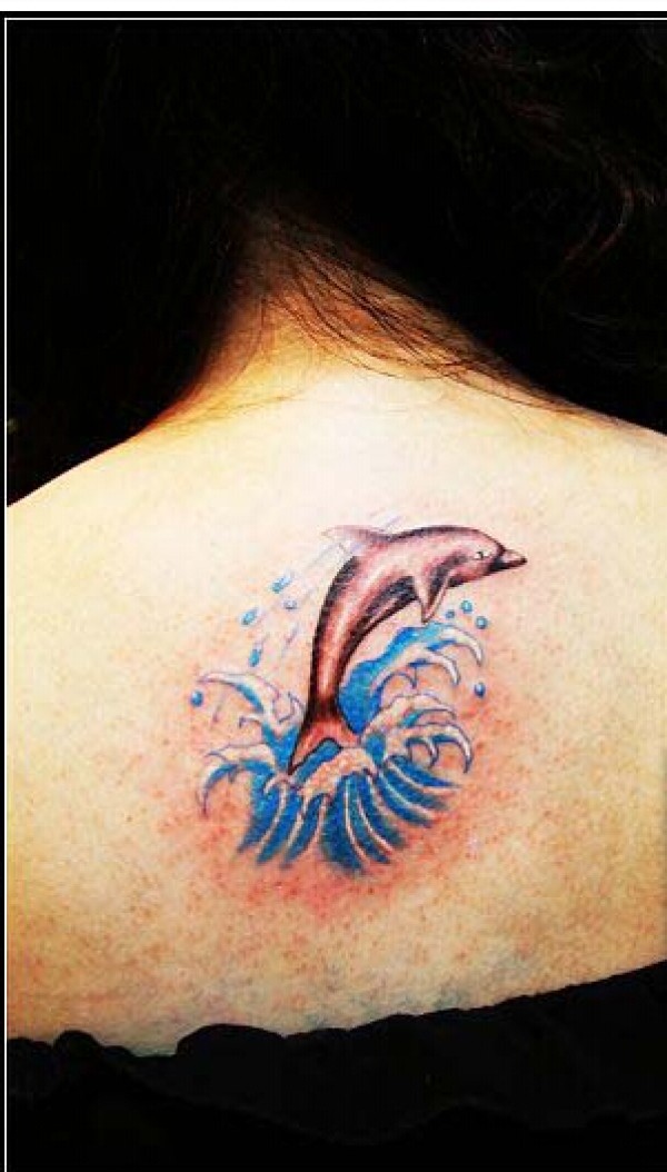 背部上唯美时尚好看的海豚纹身