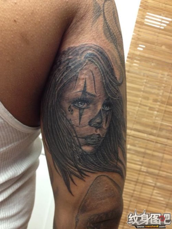 女性肩部肖像刺青_肖像纹身图案大全_纹身图吧