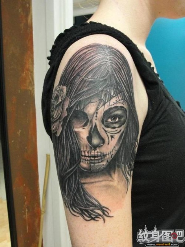 女性肩部肖像刺青_肖像纹身图案大全_纹身图吧