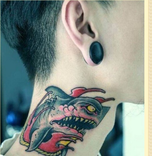 个性脖子时尚好看的彩色鲨鱼纹身图案